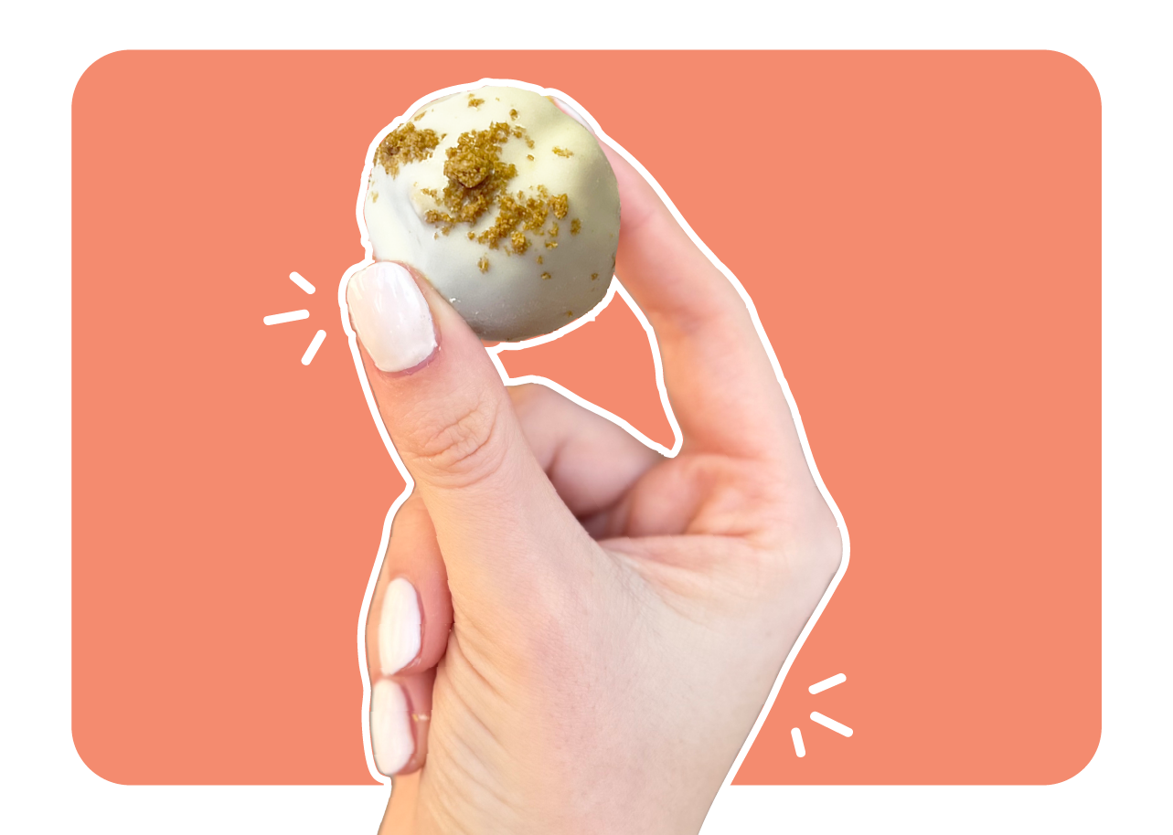 Bite-sized energy boosters cratfed from oats, dates and smooth, creamy Biscoff spread, all topped with white chocolate and a sprinkle of Biscoff crumbs.