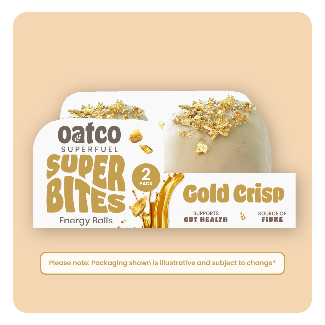 Oatco Superfuel Gold Crisp Super Bites, the perfect blend of golden caramel, oats and crunchy goodness in a naturally energising snack.