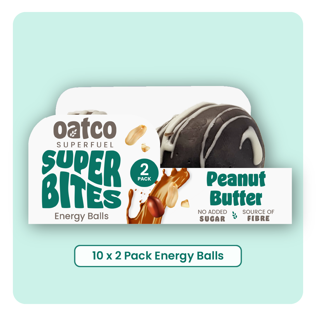 Oatco Superfuel Peanut Butter Super Bites, a crave worthy blend of creamy peanut butter, wholesome oats, and sweet dates, finished with rich dark chocolate and a smooth white drizzle for naturally energising snack.