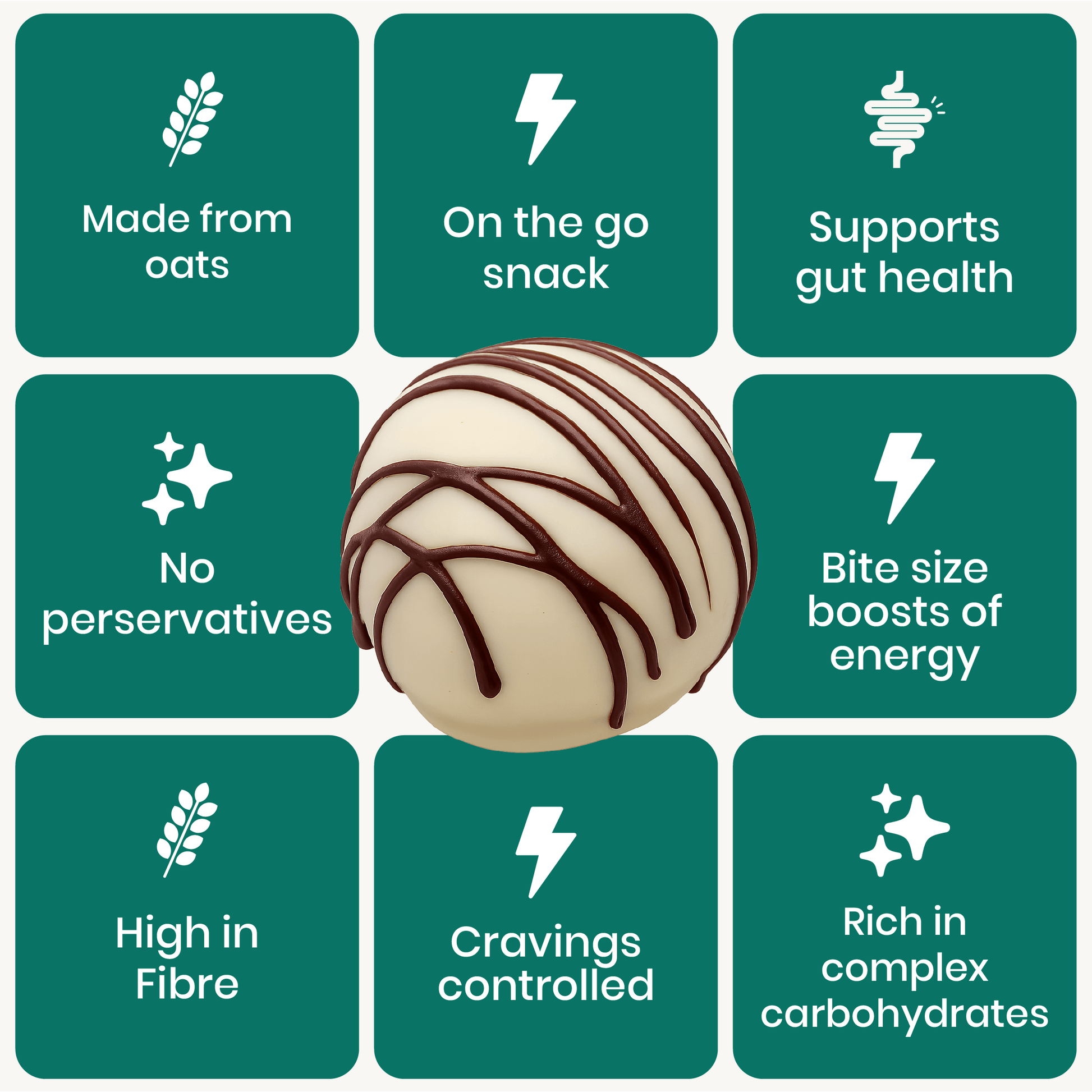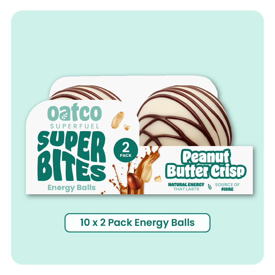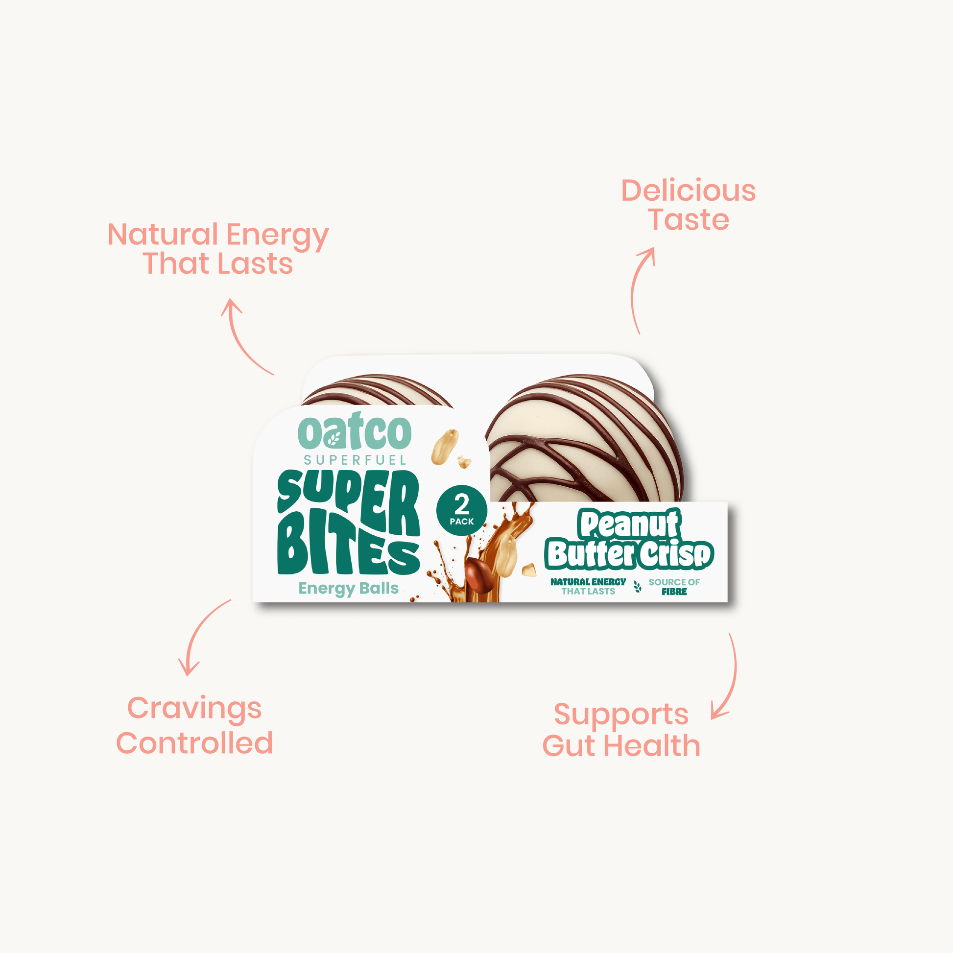 Oatco Superfuel Peanut Butter Super Bites, a crave worthy blend of creamy peanut butter, wholesome oats, and crispy goodness, finished with rich white chocolate and a smooth milk chocolate drizzle for naturally energising snack.
